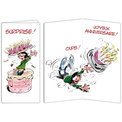 Afie GLMX 2039 Gaston Lagaffe Maxi Large Happy Birthday Card 1 Year More Humorous Giant Cake Candles for Girls and Women Closed Format 31.5 x 15 cm with Illustrated Envelope Made in France