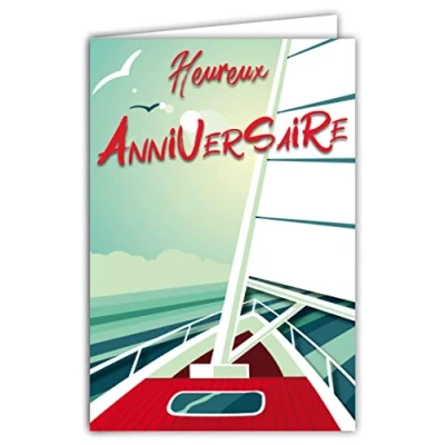 Afie Happy Birthday Card Sailing Boat Sea Ocean Marine Blue White Red Illustration with Envelope Format 12 x 17.5 cm 300 g Paper from sustainable forests. Made in France 69 8043