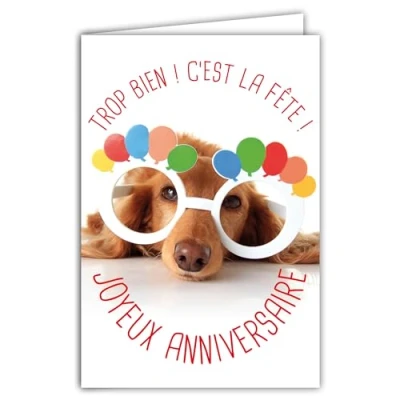 AFIE Humorous Happy Birthday Card with Illustrated Envelope, 17.5 x 12 cm, Funny Dog Disguised Glasses for Party Creation Made in France 69 6201