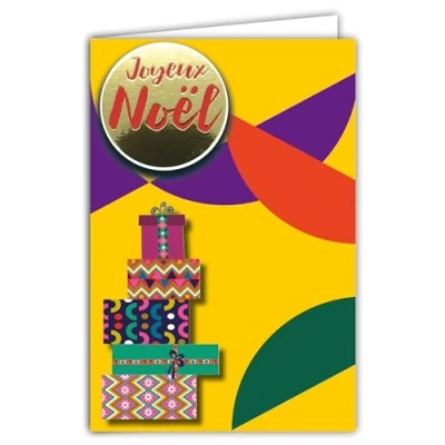 AFIE Merry Christmas Card Embossed Collage Glossy Text with Envelope 12 x 17.5 cm Decorated Gift Packs Geometric Illustration Best Wishes Holidays End of Year