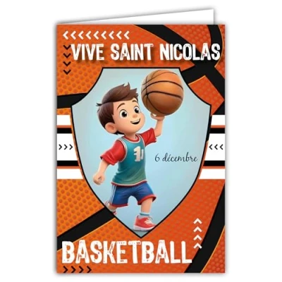 FESTIVE DESIGN: Colourful greeting card with basketball design on a bright orange background, perfect for celebrating Saint Nicholas on December 6th Practical size: Dimensions: 12 x 17 cm, comes with a matching white envelope for easy shipping Superior quality: Made in France with high quality materials for a professional finish SPORTS THEME: Modern illustration of a young basketball player in action, ideal for sports enthusiasts PERSONALIZATION: Interior space for writing a personal message to wish a happy birthday boy