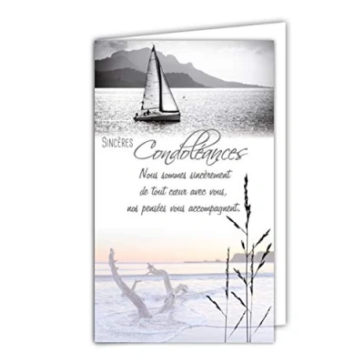 Afie Sincere Condolence Card Small Grey Peaceful Landscape Sea Boat Grass Made in France
