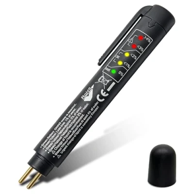 【5-in-1 Universal Compatibility】Designed to test DOT3, DOT4, DOT5, ENV6 and ENV4 brake fluids, suitable for most cars and light vehicles 【Fast & Accurate Results】Simply immerse the tester pen into the brake fluid reservoir to get instant, reliable readings, helping you know when fluid replacement is needed 【5 LED Moisture Indicator】Clear LED display shows brake fluid condition at a glance: green for good, yellow for caution, and red indicating immediate fluid change 【Durable & Safe Design】Features a nickel-plated metal probe that resists oil, oxidation and corrosion, combined with a non-slip matte housing for long-term use 【Portable & Easy Operation】Compact pen-style design with no cables required, lightweight and easy to carry—ideal for DIY users, garages, workshops and mechanics 【Reliable After-Sales Support】At AFIODA, your satisfaction matters. If you have any questions, our friendly customer service team is ready to help. We’ll respond quickly and work to resolve any issue in an efficient, hassle-free way