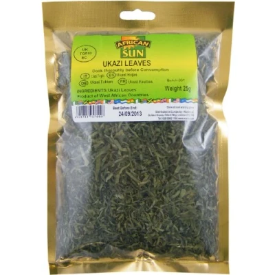 Finest quality ukazi leaves Ideally used in soups Rich source of vitamins and minerals Mild Bittery taste Well packed for customer convenience