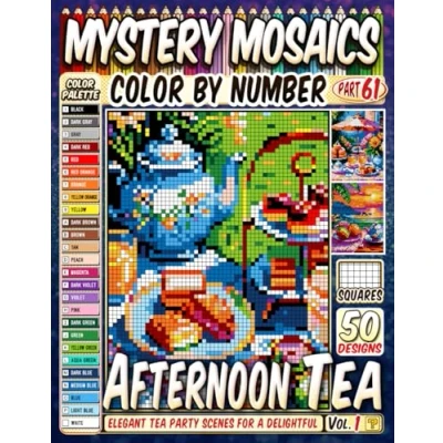 Afternoon Tea Mystery Mosaic Color by Number: 50 Elegant Party Scenes for a Delightful and Serene Experience in Pixel Art