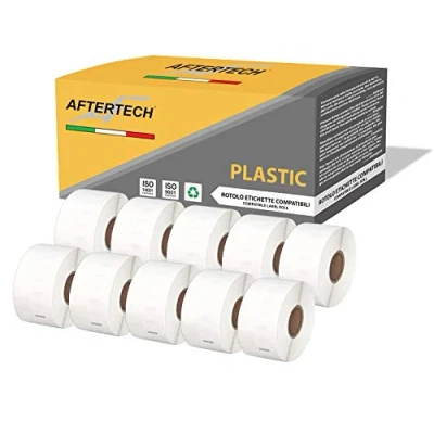 Aftertech 10 x 99012P 36 89 mm Compatible Adhesive Waterproof Plastic Labels Rolls (260 Labels/Roll = 2600 Total) for Dymo LabelWriter Printer Labeling Machines 10x99012PLA
