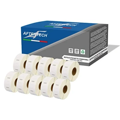 Aftertech 10x 2525 25x25mm Compatible Adhesive Labels Rolls (750 Labels/roll = 7500 total) for Dymo LabelWriter Seiko SLP LabelWriters Printers S0929124 10x2525