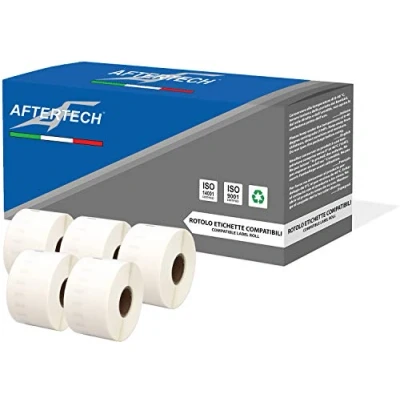 Aftertech 5X 11356 41 x 89 mm Compatible Adhesive Labels Rolls (300 Labels/Roll = 1500 Total) for Dymo LabelWriter Seiko SLP Printer Labeling Machines S0722560 5x11356