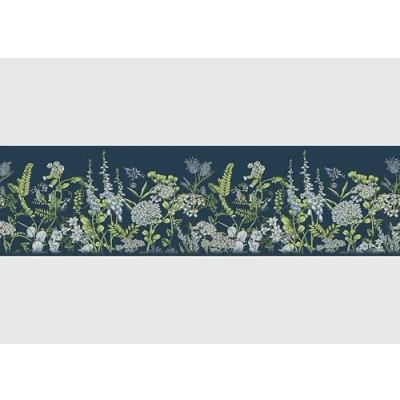 AG Design AWB 8526 Self Adhesive Border Wicken Flowers in Prussian Blue, Waterproof Decoration for Walls, Furniture, Wallpaper, Wall Coverings and Doors, Film, Width 500 cm x Height 13.8