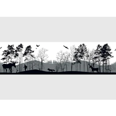 AG Design Forest Silhouette Self Adhesive Border, Kitchen, Living Room, Wall Sticker, Multicoloured, 500 x 13.8 cm, AWB 8270