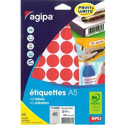 agipa Adhesive circular stickers (diameter: 0.94 inch (24 mm), Round, Red Manufacturer number: 114323 agipa manufacturer: