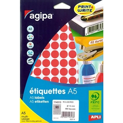 agipa Adhesive circular stickers (diameter: 0.59 (15 mm) inch, Round, Red Manufacturer number: 114313 agipa manufacturer:
