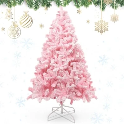 FULL AND PLUMP EFFECT:5ft Christmas tree featured 600 branch tips, its lush branches offer ample decorating space, use your Christmas gifts,ornaments, baubles or lights to offer it a truly magnificent look. FIND YOUR IDEAL SIZE: AGM Pink Christmas Trees are available in 5ft, 6ft, and 7ft, making them a great choice to fit any space in your home UNIQUE PINK DESIGN: A pink Christmas tree stands out as a unique choice, which brings a distinct charm to your holiday decor, making your home truly stand out during the festive season. STURDY METAL BASE STAND: Pink Christmas Tree features a sturdy metal base stand for stability and lasting durability. SNOWY CHRISTMAS TREE: Designed with a sprayed white effect that lends it the appearance of freshly fallen snow. This not only gives the tree the look of a recent snowfall but also bringing a natural beauty to your holiday decor