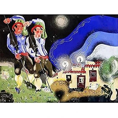 Aguiar Surreal Landschaft Figuren Gemälde Blau ungerahmt Wand Kunst Poster Home Decor Premium