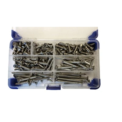 430 pieces of No 6 Sheet Metal Pozi Countersunk Head Self Tapping Screws in various sizes Unlike pan head screws the countersunk screw sits flush with the fastened material Manufactured from A2 stainless steel for resistance to corrosion Supplied in a heavy duty, non slip plastic box ideal for any toolbox. Please see the main description for the sizes and quantities contained in the assortment., Manufacturer: AHC