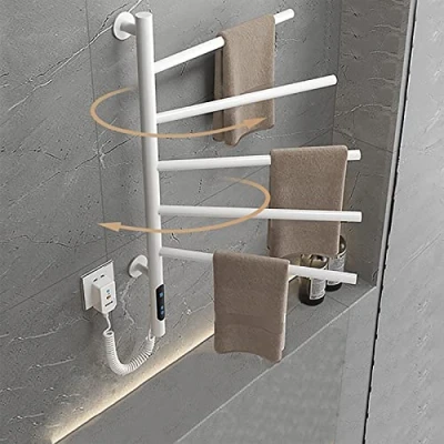 LCD Intelligent Touch Sensor Switch: This Heated Towel Rack has intelligent thermostat with LCD display, touch screen for temperature setting, and also can set heating mode, constant temperature mode, drying mode, time mode, etc 4 Modes: LCD digital display touch screen, 55℃ constant temperature heating. Timing mode keeps smart timing for 1-8 hours, set different heating requirements every day, after setting, cycle every week. Free mode: The towel rail radiator can be adjusted freely at 45℃-70℃. Supplied with a mounting kit containing all the necessary elements for wall mounting Energy Efficient & High Heat Output: Our Electric Towel Rail feature the latest 5.0 Carbon Fibre Dry Heating elements, which means that when the towel rail is up to working temperature the power used to keep the rail at the correct temperature can reduce by up to 30%, saving you money, these rails are designed and manufactured to ensure you have a quality towel warmer that will give you peace of mind for many years Technical Information: 5 bars -180° rotation, Width 420mm x Height 600mm; expand Width 840mm x Height 600mm, CE certified and IPX4 rated which means its suitable for Bathroom zone 2, 301 Stainless Steel, 82-160 watt dry electric heating element. 2m power cord, built in on/ off switch, Distance from wall to front of rail , fit bathroom or other rooms in house/ apartment/ holiday home/ hotel / pensions/ clubs IPX4 Waterproof: Say goodbye to the hidden dangers of electric shock, waterproof and leakproof, to ensure the health of the whole family. The surface of the towel rail radiator has an anti-scalding coating with a child-proof function. Double protection can protect children from accidental scalding