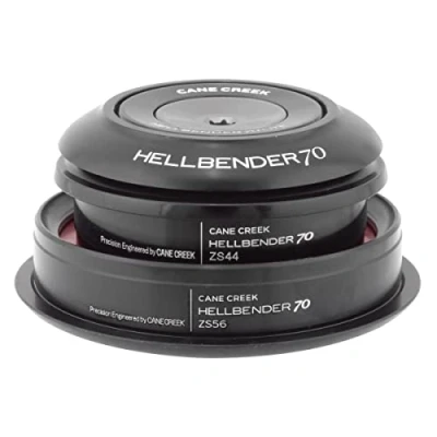 Hellbender 70 Lite is a headset that packs durability, weight savings and value into one product. Equipped with 6000 series aluminum and 35% lighter over comparable models. The Hellbender 70 Lite is an ideal headset choice for any bike where weight savings is a priority - a lightweight headset that doesn’t lack durability or performance. CUPS & COVERS: 6061 T-6 Aluminum Internally contoured and relieved to minimize weight and maximize strength TOP COVER: Low-friction upper bearing seal completely seals cup from contaminants and is fully captured by the top cover with no loose parts CROWN RACE: Alloy Dual-Seal crown race provides excellent seal efficiency COMPRESSION RING: Low friction Carbon friendly captured compression ring BEARINGS: Lightweight aluminum/w steel hybrid Hellbender LITE sealed cartridge bearing WEIGHT: ZeroStack (ZS) — 90g (vs 117g for normal ZS Hellbender)
