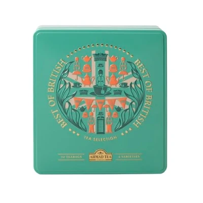 Ahmad Tea Best of British Green Crest Caddy Black, & Fruit Selection, 32 Teabags