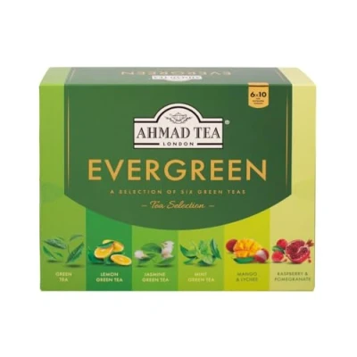 Ahmad tea Green Selection Pack teas, Fruit Jasmine Perfect gift 60 Teabag Sachets 6 Flavours