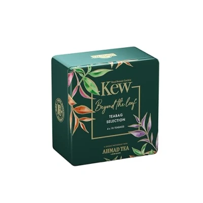 SELECTION CADDY - created in partnership with Kew Gardens, this tea selection pack curated with 4 signature black teas is housed in an elegant caddy inspired by the extoic history of Kew Gardens. Perfect gift for black tea lovers searching for something special. TEA SELECTION - this elegant selection of 4 signature black tea blends curated into 40 teabags (10 for each blend) comprises of Majectic Breakfast, Garden Afternoon, Elegant Earl Grey, and Splendid Ceylon teas. KEW GARDENS - inspired by the adventure and history of exploration of Kew Gardens, this collaboration aims to pay homage to the beauty of nature and the humble tea plant, by striving to perfect our favourite classic blends. GARDEN FRESH - each harvest of the blends in the selection caddy are garden fresh sealed to best preserve the flavour and aroma, ready for whenever you want to enjoy it. HAND PLUCKED - working with specially selected tea gardens, all our teas are lovingly hand plucked using traditional methods, leaving only the best tea leafs in each blend. Ahmad Tea is proud to belong to the Ethical Trade Partnership (ETP), continuing our commitment to sourcing our teas in a responsible way. TEA PASSION - through 4 generations of tea masters, our passion to inspire the love of tea is infused into every blend that we craft, with the aim to honour the skills of the most exclusive tea gardens around the world.