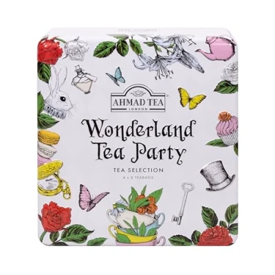 Assorted Tea Selection – A curated collection of 32 teabags featuring four popular Ahmad Tea blends Four Distinct Flavours – Includes classic black teas with bergamot, a fruity strawberry-infused black tea, and a refreshing green tea Gift-Ready Tea Caddy – Presented in a decorative reusable Wonderland-themed caddy, ideal for gifting or display Individually Foil-Wrapped Teabags – Sealed for freshness to ensure consistent flavour and aroma in every cup Quality You Can Taste - Expertly blended teas made with carefully sourced leaves for a balanced, smooth and satisfying brew