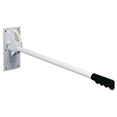 AmazonIdeal grab support for the elderly and less able. Ideal for use in the bathroom and around the home Folds up against the wall when not in use Finished in tough white epoxy coating for improved longevity 127 kg (20 stone) weight limit