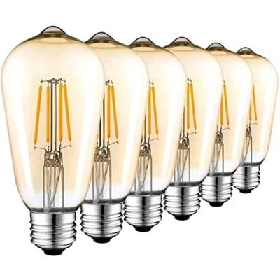 AidSci Vintage LED Edison Bulb, 4W (40W Equivalent) E27 400LM Filament Light Retro Antique Style 2700K Warm White ST64 6 Pack Gold Tint Amber Flicker Free