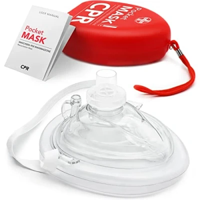 AIESI® Pocket Mask professional resuscitation for mouth to respiration with one way valve and filter, CPR Resuscitator