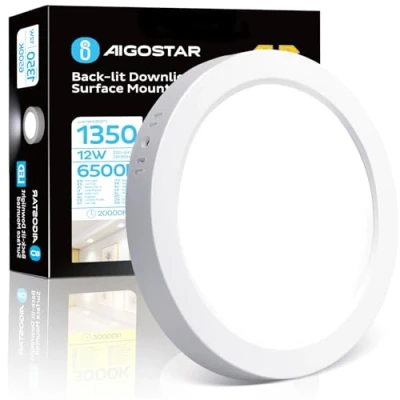 Aigostar LED Ceiling Light, 12W Daylight White Lights, 6500K Kitchen Lights Ceiling, 1350LM Cool for Bedroom, Living Room, Hallway, Outside Porch and More