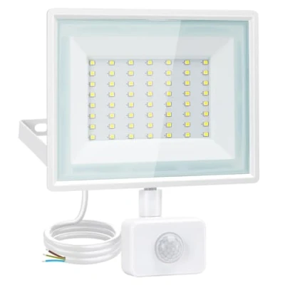 Super Bright Flood Light: Incredible brightness for 50 watts, Aigostar security Lights' brightness up to 4300 lumen light, which saves more than 89% of electricity. The 6500K white light offers soft and even illumination, covering a 110°lighting range, which gives a great field of light onto your driveway, front door, back garden and more. And in the 2022 new energy level regulations, the energy class F = A+ in the old energy class.(E = A++). These security Lights still very energy saving. Motion Sensor Lights Outdoor: Aigostar security light with an infrared sensor will light up when motion is detected within the sensor's range. The PIR detector is reasonably sensitive. On the back of the sensor, there are three buttons, you can adjust the distance at which motion will be detected (13~30FT), the time the light stays on (from 10S to 10 MIN) and the ambient light sensitivity (how dark it needs to be before the light will be triggered/triggered day+night. / triggered only at night) Adjustable Outdoor Sensor Light: The stand of the floodlight can be adjusted to multiple angles, up to 180°. After installation, the projection surface can be adjusted to any angle. And the sensor head can be rotated 180 degrees vertically+horizontally. So you can adjust it to the optimum sensing area and avoid annoying your neighbors by it triggering where it shouldn't! IP65 Waterproof Outdoor Lights: The motion sensor light outdoor adopts IP65 waterproof technology to ensure that it can work perfectly in rainy or snowy conditions, providing great convenience and security for your life. Made of aluminum Die-casting, it offers insulation, safety, good heat dissipation, and corrosion resistance, prolonging the lamp's service life. It last up to 25000 hours! Perfect for outdoor use in gardens, garages, doorways, yards, docks, fences, etc. Easy to Install: This outdoor motion sensor light is effortless to install with the included adjustable bracket. The recommended installation height is 3-5m/9.84-16.4ft. The wire length of the induction lamp is 22.5cm/8.86” (3 wires, L- Brown, N-Blue, Earth wire - Yellow green), convenient to join it to a longer cable. The die-cast aluminium material looks very premium and textured. And It's compact size makes it unobtrusive yet it gives off a bright light where you need it.