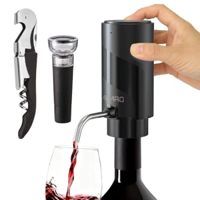 AIKARO Electric Wine Aerator Pourer Rechargeable Automatic Decanter, with Corkscrew and Vacuum Stopper (Set)