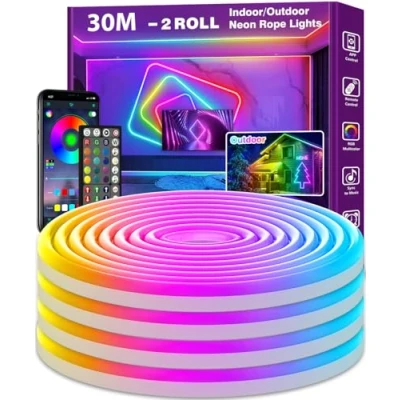 AILBTON Led Neon Rope Lights 30m Flexible Lights,Control with App/Remote,Multiple Modes,RGB Music Sync Gaming Strip for Bedroom Indoor