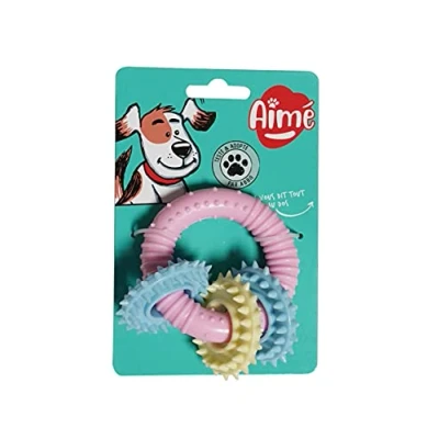 AmazonRing shaped toy ideal for playing and chewing Ultra soft rubber, suitable for puppies or small dogs Pastel colours Allows your pet to enjoy hours of fun and avoid boredom Ideal for puppies and small dogs. Dimensions: 10 cm