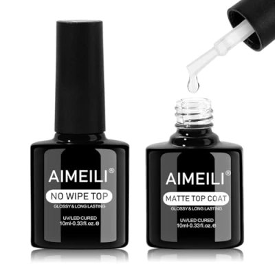 AIMEILI Gel Nail Polish No Wipe Top Coat and Matte Set, Cruelty Free, Vegan, Shine Finish Long Lasting Soak Off, LED Lamp