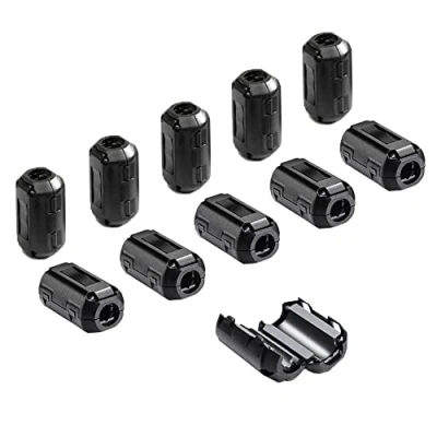 Aiqeer 10 Pcs Clip on Ferrite Ring Core, EMI RFI Noise Suppressor Cable Clip, Anti Interference High Frequency Filter (5 mm Inner Diameter)