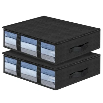 AiQInu 2 Set Foldable Underbed Clothes Storage Boxes with Zip Window Transparent Bed Organiser Wardrobe for Blankets Quilts 60 x 45 15 cm