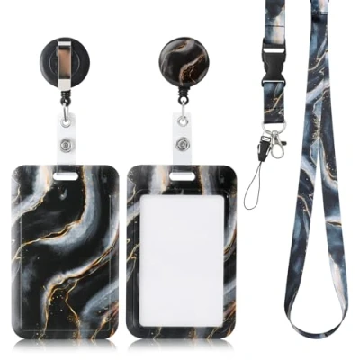 AiQInu ID Card Holder with Strap, Lanyard, Retractable Badge Reel Carabiner Clip & Removable Lanyard for Women, Teachers, Nurses, Doctors, Students (Black)