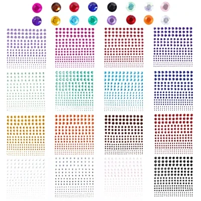 Multiple choices: a total of 16 colours, each with 225 rhinestones. Each color has 5 sizes: 2mm, 3mm, 4mm, 5mm, 6mm to meet your different needs. A wide range of mix and match rhinestone stickers to match your creative designs. Skin-friendly material: self-adhesive rhinestones are made of environmentally friendly, skin-friendly acrylic, bright and shiny, very eye-catching when using on the face. Gemstone-safe glasses stickers on face, skin, body and nails Reusable: rhinestones do not require glue, it can be easily attached to work after it has been removed from the back panel, and leaves no traces when removed. After the first use, wash and apply additional eyelash glue or body glue to the self-adhesive stones for repeated use. Easy to use: the self-adhesive rhinestone back is self-adhesive, simply remove it with your hands or tweezers and stick it to crafts, leather, clothing and projects. The adhesive allows the rhinestone face to stick well and last for a long time. Wide applications: stone face adheres well to a variety of surfaces, including paper, wood, walls, skin and nails. Face rhinestones are also ideal for paper craft projects such as scrapbooking, wedding invitations, Christmas card making. Sticky rhinestones are great decorations for makeup, mobile phones, gift wrapping and are also commonly used for faces and nails at parties, Halloween, carnival, carnival and more.