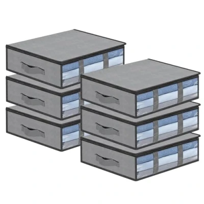 AiQInu Underbed Storage Boxes, 6 Pieces Under Bed Organizer with Observation Window and Handle, Space Saving Foldable Wardrobe for Clothes Blankets Duvets