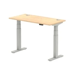Air 1200x600mm Height Adjustable Desk Maple Top Cable Ports Silver Leg