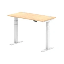 Air 1200x600mm Height Adjustable Desk Maple Top Cable Ports White Leg