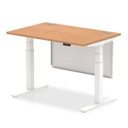 Air 1200x800 Height Adjustable Desk Oak CP White Leg Modesty Panel