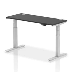 Air 1400 x 600mm Height Adjustable Office Desk Black Top Cable Ports Silver Leg