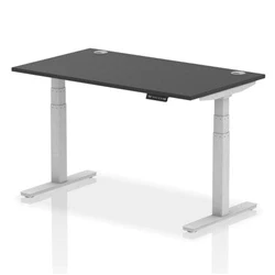 Air 1400 x 800mm Height Adjustable Office Desk Black Top Cable Ports Silver Leg