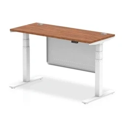 Air 1400x600 Height Adjustable Desk Walnut CP White Leg Modesty Panel