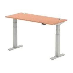 Air 1400x600mm Height Adjustable Desk Beech Top Cable Ports Silver Leg