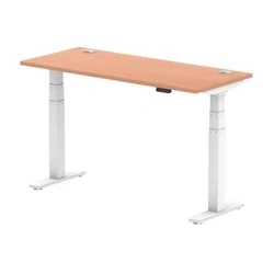Air 1400x600mm Height Adjustable Desk Beech Top Cable Ports White Leg