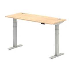 Air 1400x600mm Height Adjustable Desk Maple Top Cable Ports Silver Leg