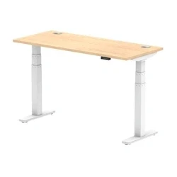 Air 1400x600mm Height Adjustable Desk Maple Top Cable Ports White Leg