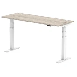 Air 1600x600mm Height Adjustable Desk Grey Oak Cable Ports White Leg